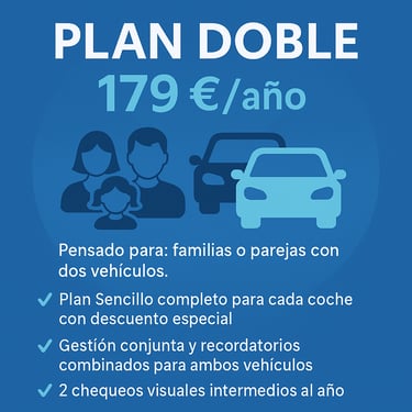 ✔ Gestión conjunta y recordatorios combinados para ambos vehículos.