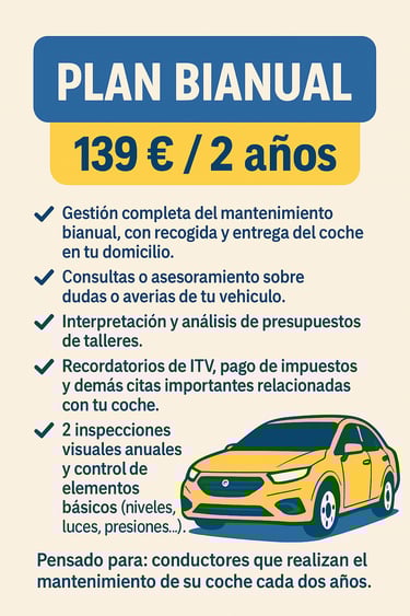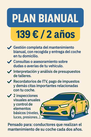 🚗 Pensado para: conductores que realizan el mantenimiento de su coche cada dos años.