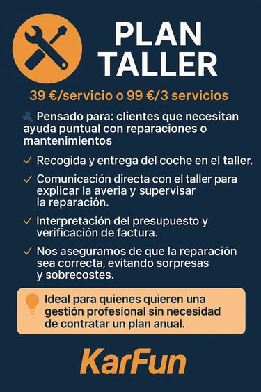 Recogemos y devolvemos tu coche, gestionamos reparaciones y ofrecemos asistencia telefónica, todo por una cuota fija anual adaptada a tus necesidades.