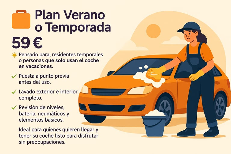 ☀️ Pensado para: residentes temporales o personas que solo usan el coche en vacaciones.